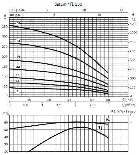 Погружные центровежные многоступенчатые насосы диаметром 4” Saturn 4 FL 250 22 / О4I 150