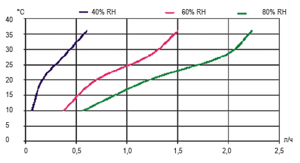 Рабочий диапазон – влажность | % RH | 40-100 |