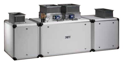 Приточно-вытяжные канальные приборы серии 01 AF-MC удовлетворяют самые высокие требования к комфорту, благодаря встроенному контроллеру MC 2001. Установка и система каналов аналогичны серии U. В зависимости от режима покоя или купания и наружной температуры в зал бассейна подается наружный воздух от 0 до 100 %. В режиме покоя осушение воздуха осуществляется в режиме рециркуляции. В режиме купания подается необходимая доля свежего воздуха. Избыточная влажность и/или температура отводится посредством регулирования доли наружного воздуха. Перед выходом отработанного воздуха производится отбор тепла и влаги и возвращение их в плавательный зал.