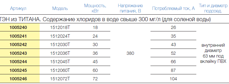 ■■ТЭН из ТИТАНА. Содержание хлоридов в воде свыше 300 мг/л