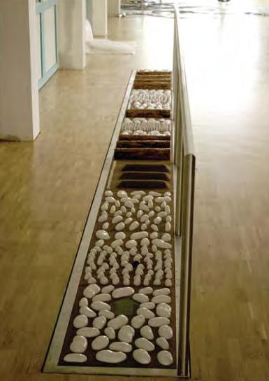 Дорожка для массажа представляет собой специальное устройство, имитирующее морской берег. Ходя по искусственным камешкам, вы массируете точки на стопах, что, как известно, оказывает положительное влияние на общее состояние здоровья. В частности, такое воздействие на рефлекторные зоны способствует выведению из организма шлаков и стимулирует обмен веществ. Существует несколько разновидностей дорожек для массажа. Принцип их работы одинаков, но отличается внешний вид изделий: по одним можно ходить по кругу, другие предназначены для использования сразу несколькими людьми одновременно. Дорожка для массажа — прекрасное решение для салонов красоты и SPA-центров.