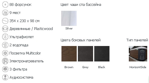 Спа бассейн Wellis Olympus 88 форсунок 9 мест 354 х 230 х 98 см Ультрафиолет 2 водопада Посветка нагреватель