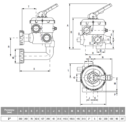 ВЕНТИЛЬ NEW GENERATION С ПАТРУБКОМ, СОЕДИНЕНИЕ 2", КОНФИГУРАЦИЯ 3 Арт. 28512