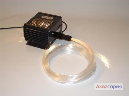 Полный, готовый к установке, комплект, включает: проектор и волоконный жгут. Жгут содержит волокна трех разных диаметров, т.е. трех разных размеров звезд. Диаметры волокон 0,75, 1,0 и 1,5 мм. Количество и длина волокон:
