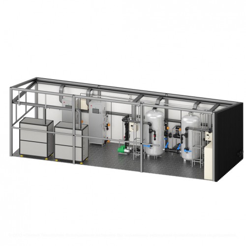 Станция озоновой водоподготовки в морском контейнера (20/40 футов). Прочная стальная конструкция стандартных размеров. Может перевозится автомобильным, железнодорожным, речным и морским транспортом. Устанавливается на фундамент из железобетонных плит.