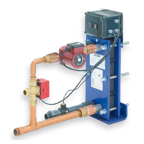 Теплообменник пластинчатый Etna, пластины из нержавеющей стали AISI 316, мощность 120 KW, в комплекте с трехходовым краном, блоком управления и циркуляционным насосом артикул 68026